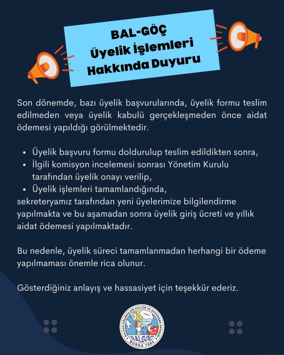 ???? BAL-GÖÇ Üyelik İşlemleri Hakkında Duyuru