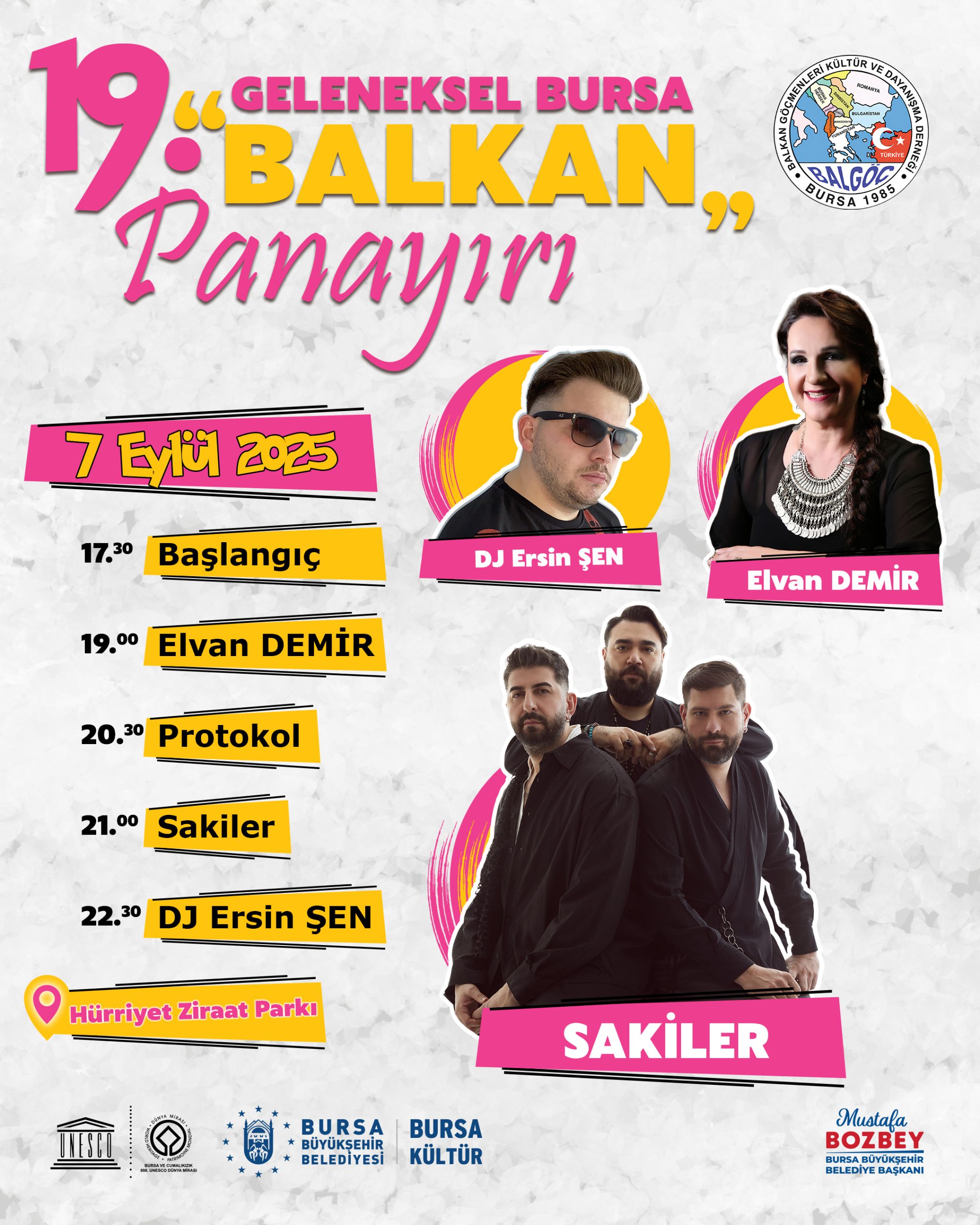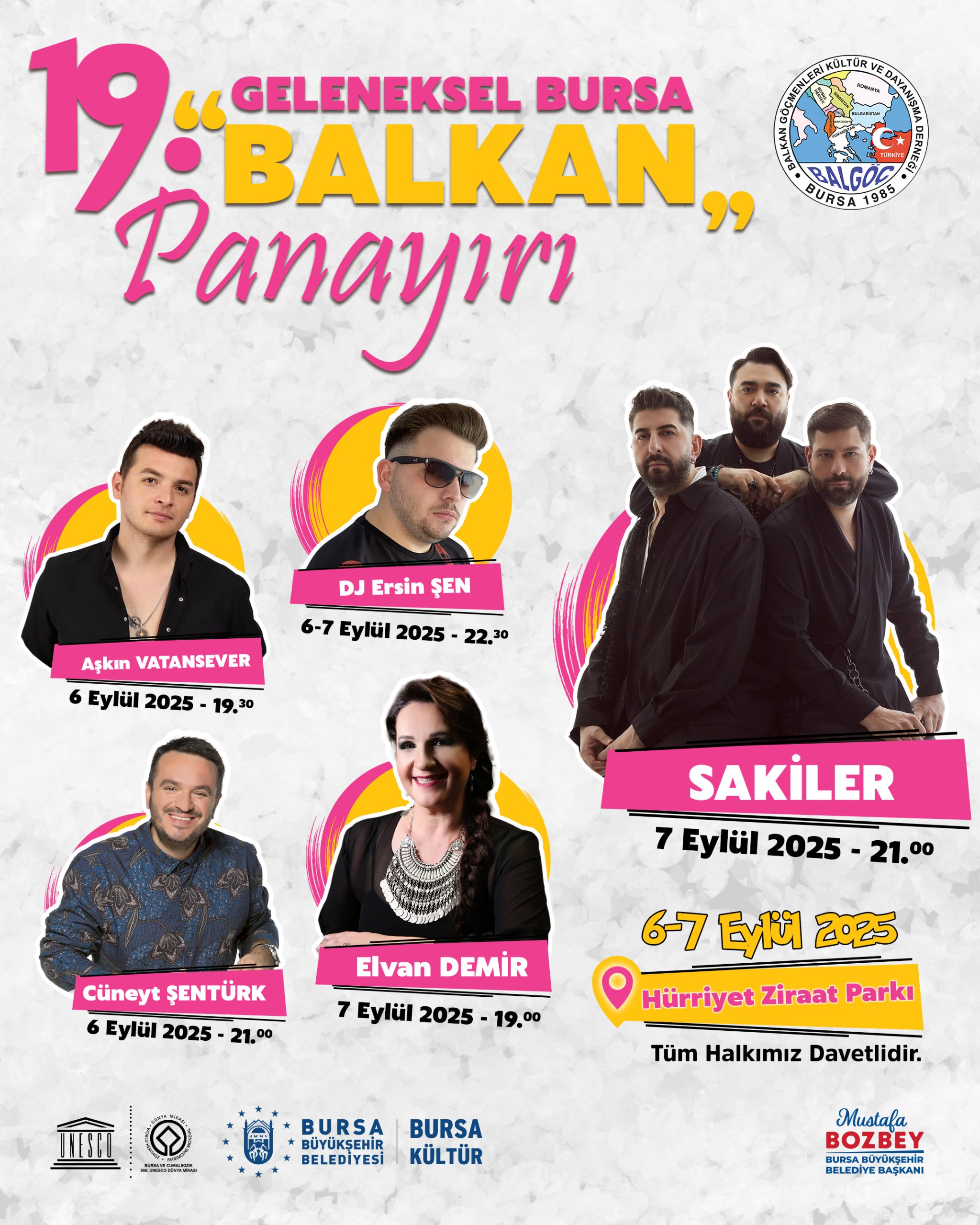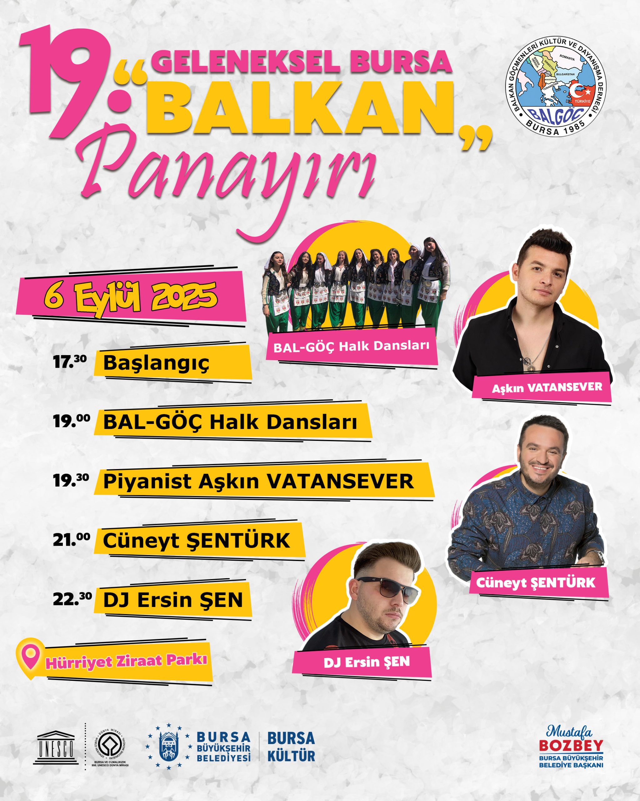 Bursa Büyükşehir Belediyesi ve BAL-GÖÇ işbirliğiyle bu yıl 19’uncusu düzenlenen “BURSA BALKAN PANAYIRI”na; sizleri eğlencemize ortak olmaya bekliyoruz…