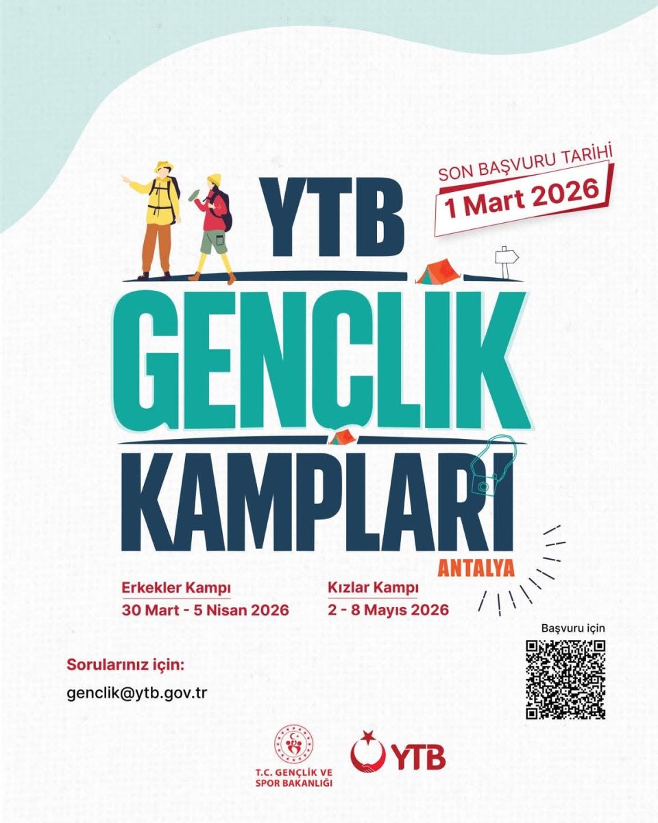 30 Mart-5 Nisan ve 2-8 Mayıs 2026 tarihleri arasında Antalya’da düzenlenecek olan YTB Gençlik Kampları başvuruları başladı.