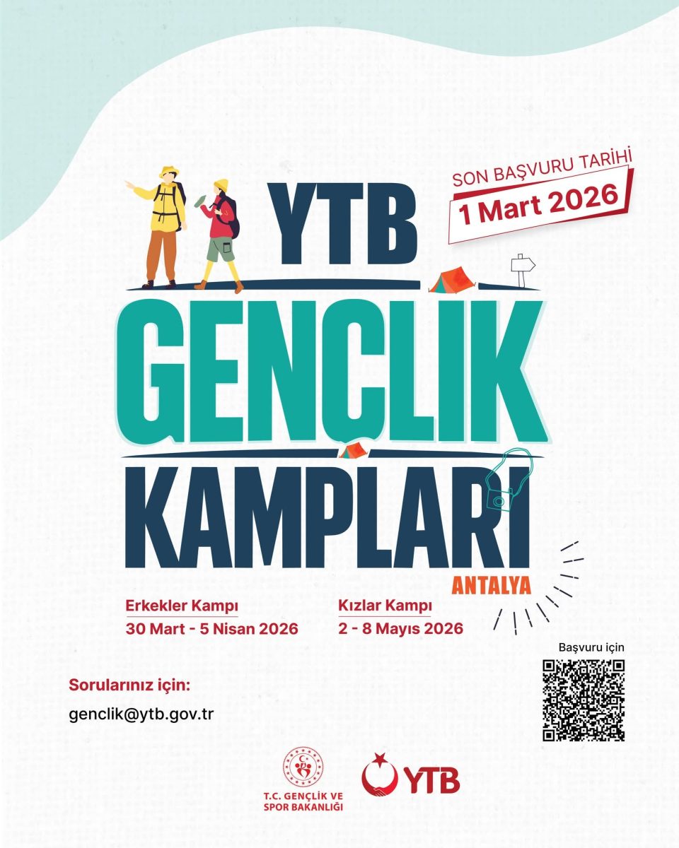 30 Mart-5 Nisan ve 2-8 Mayıs 2026 tarihleri arasında Antalya’da düzenlenecek olan YTB Gençlik Kampları başvuruları devam ediyor.